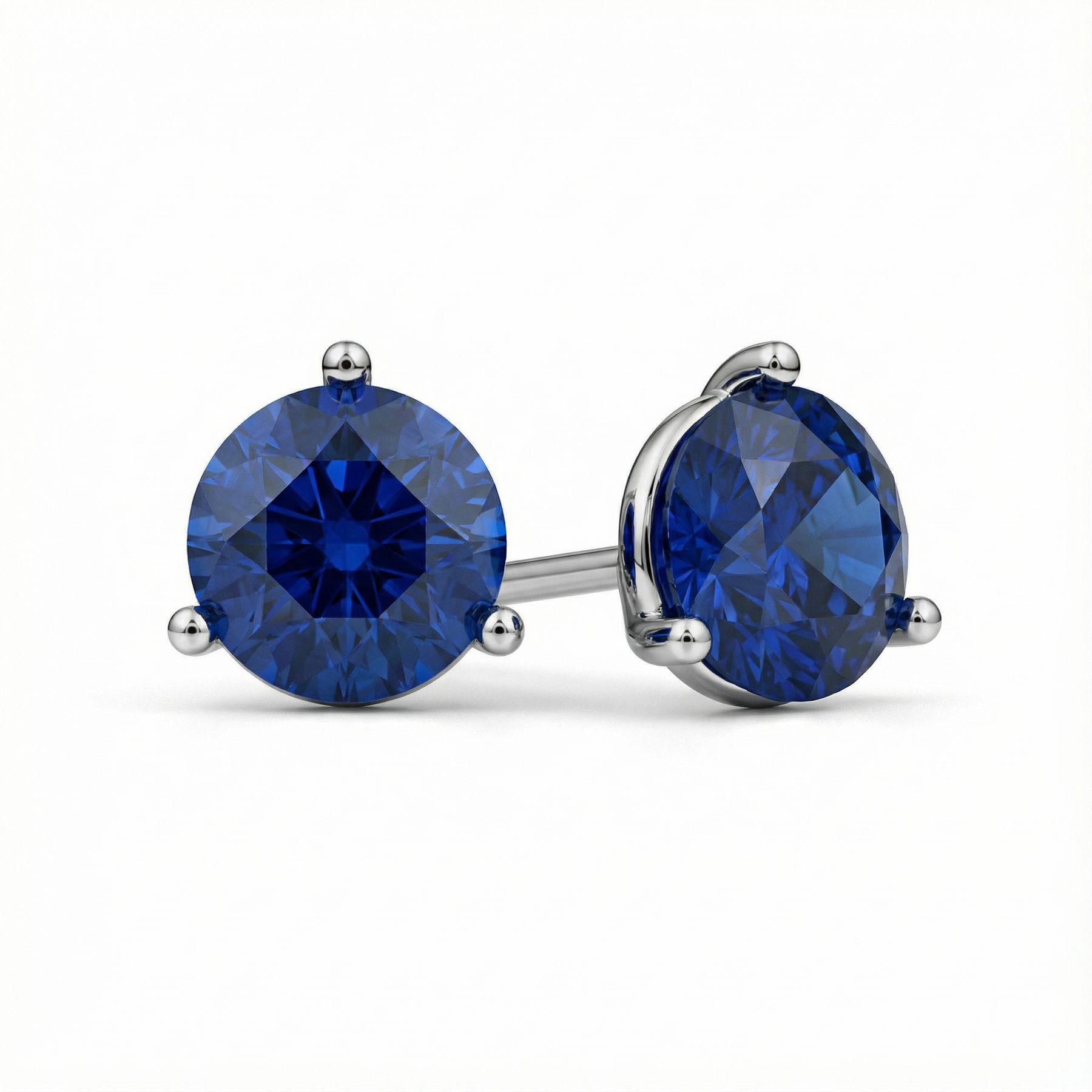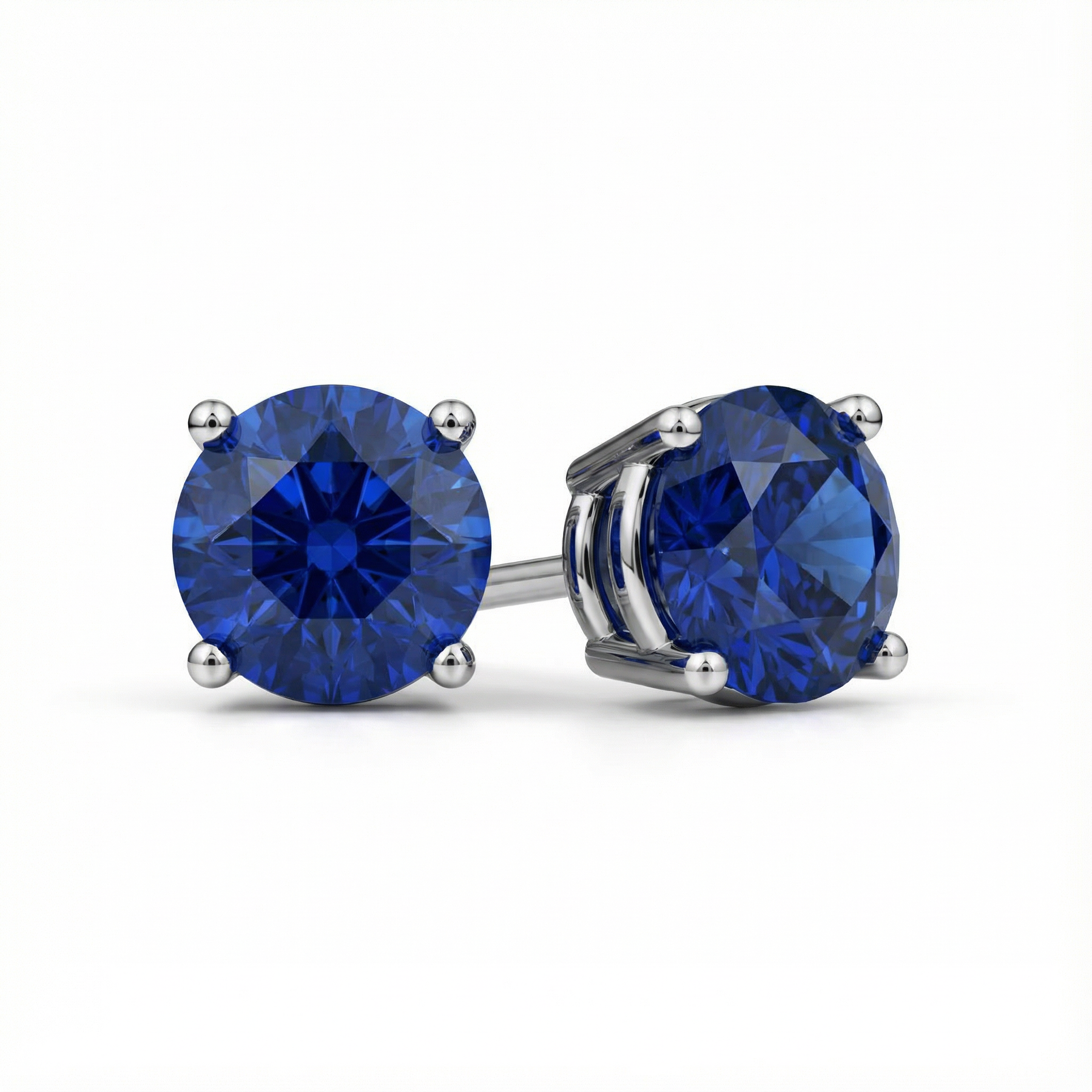 The Sapphire Studs are a pair of classic earrings set with round 1 carat lab-grown blue sapphires in a four-prong stud setting. Completed with low-profile baskets and secure posts.